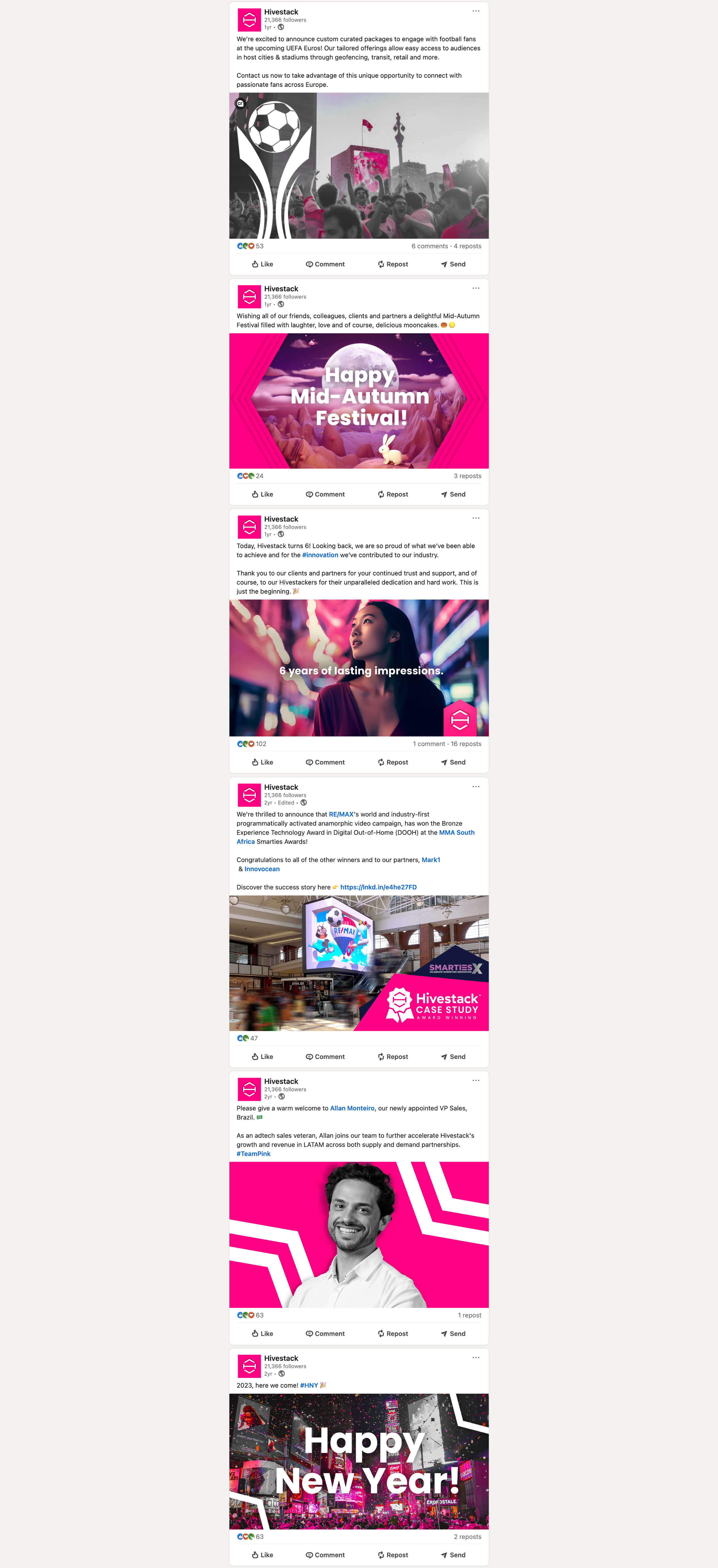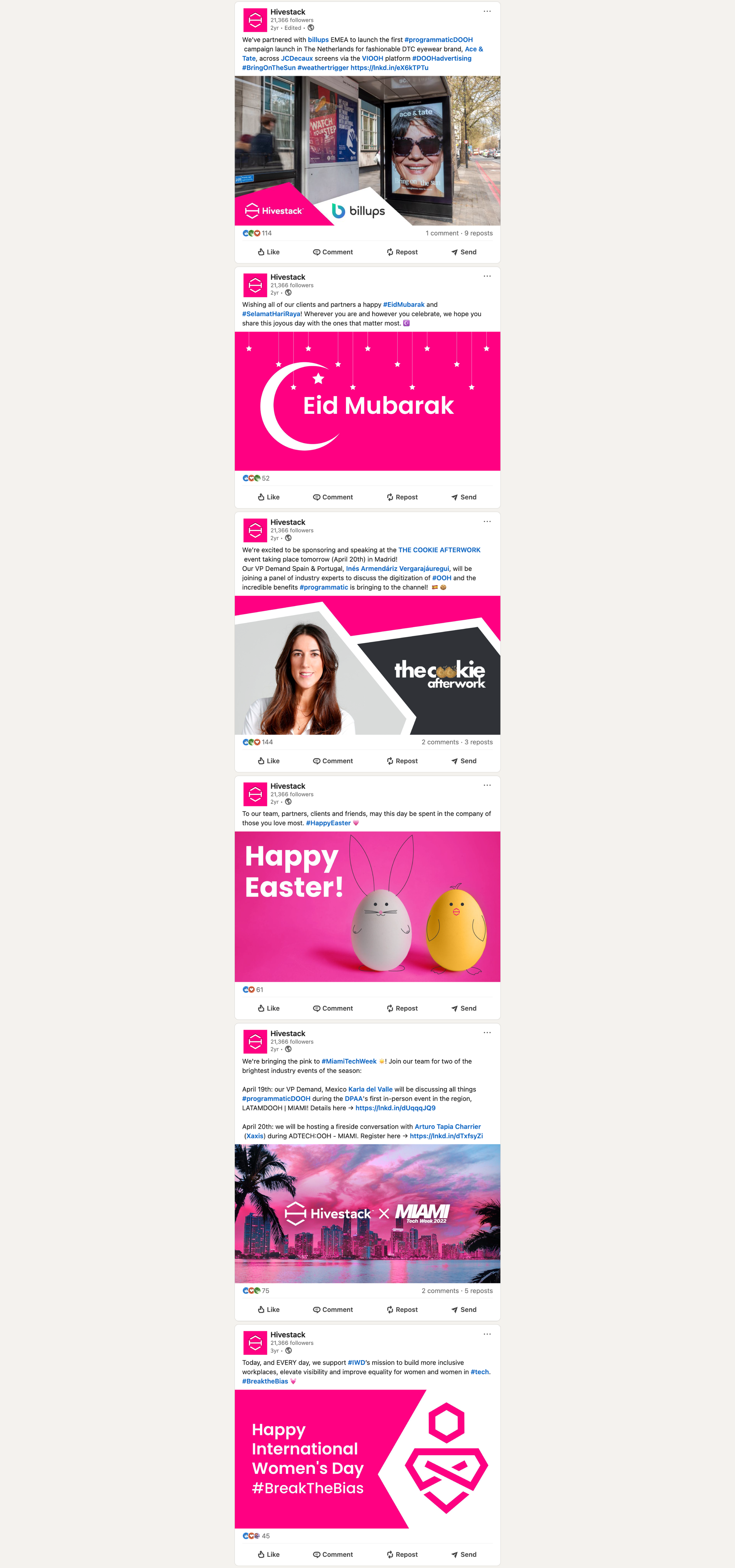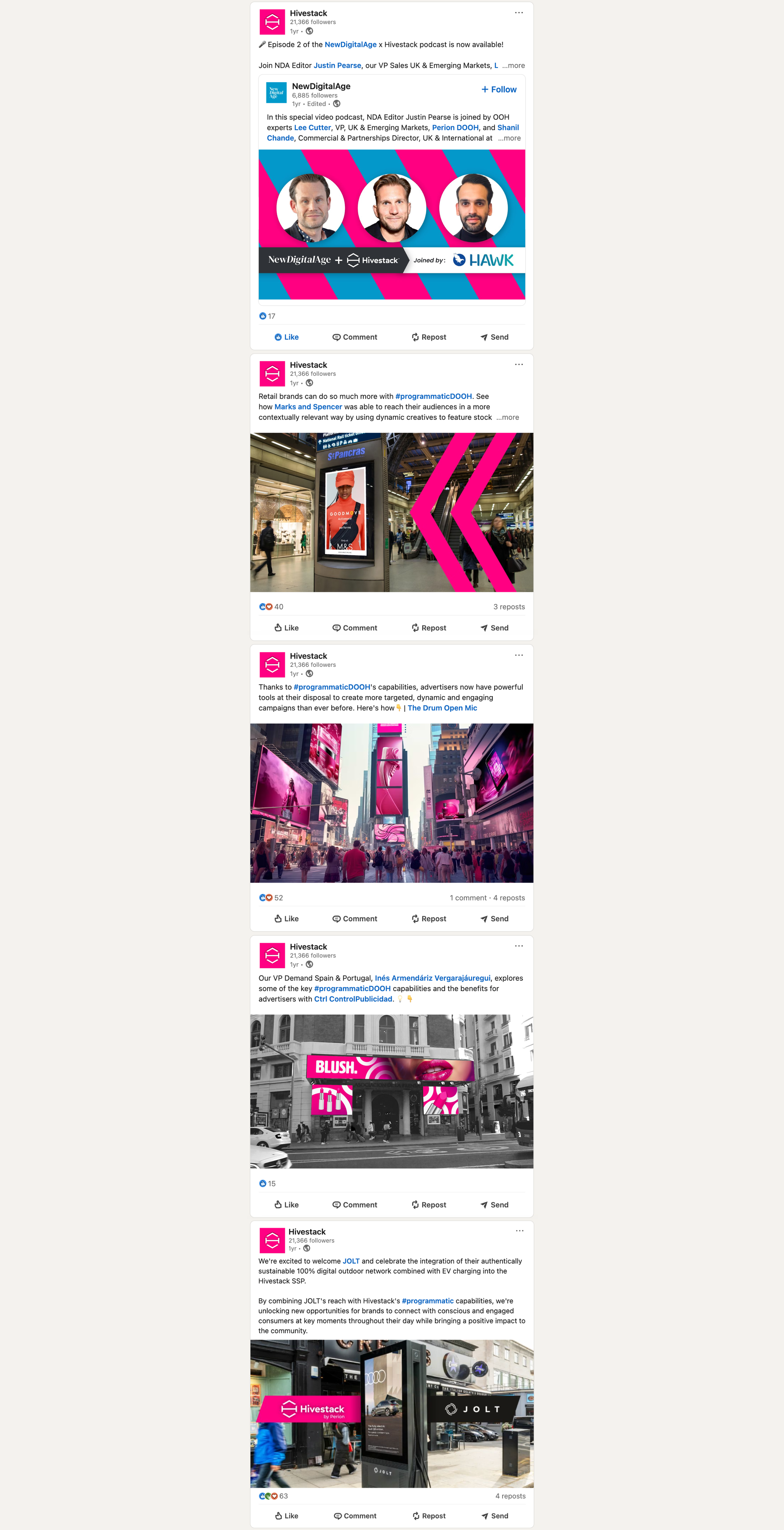 During my three-year tenure at Hivestack (now Perion), I contributed to the world's first purpose-built, full-stack programmatic digital out-of-home advertising platform. As a marketing team member, I developed strategic assets and creative solutions for this innovative B2B adtech company.